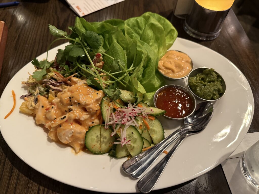My family and I ordered the gluten-free Thai Lettuce Wraps appetizer. We weren’t quite sure what to expect, but my eyes were wide when I saw this plate sat down in front of us.