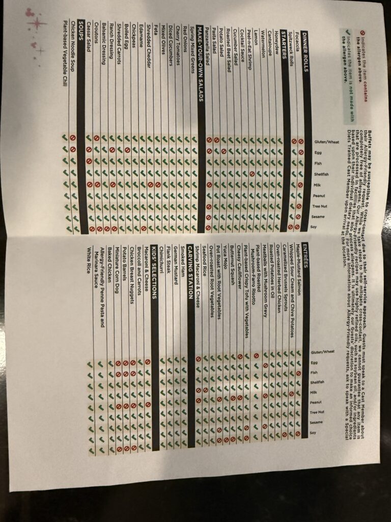 This is a character buffet. So you can enjoy all you can eat from the buffet, the gluten-free items of course. They give you a handout to look through all the gluten-free options also. By looking at the paper, most of the items on the buffet are gluten-free.
