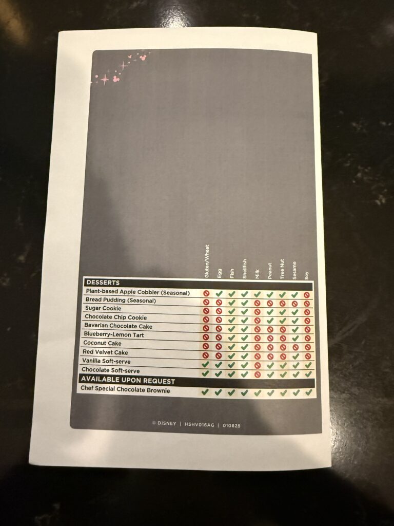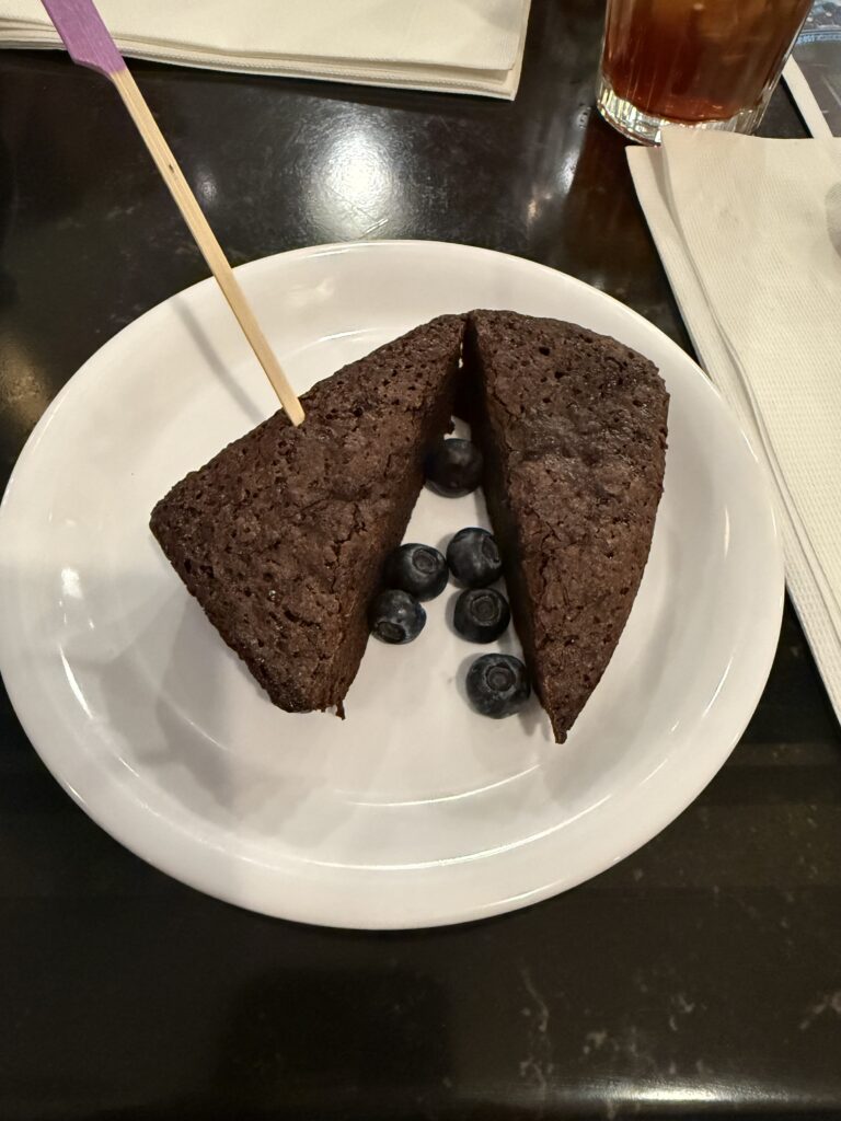 Like the rest of the food, it was underwhelming also. They opened one of the prepackaged brownies and simply placed it on a plate. It wasn’t warm and to make it “fancy” they included a couple of blueberries, which didn’t really do much in my opinion. It was a nice departure from no dessert at other Disney buffets.