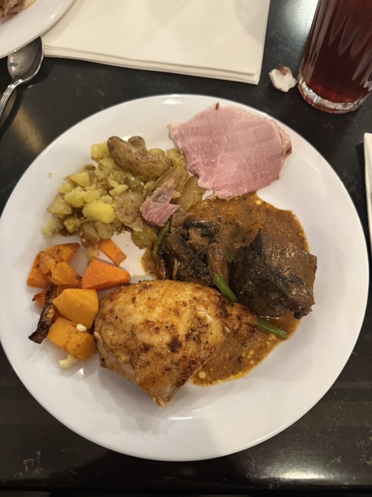 I was able to try most of the things on the buffet, but I was certainly underwhelmed. The pot roast was probably the best thing I had on the buffet. Most of the vegetables were lukewarm at best. There wasn’t a lot of flavor to any of them. I had high hopes for the brussel sprouts, but they were roasted without any seasoning.