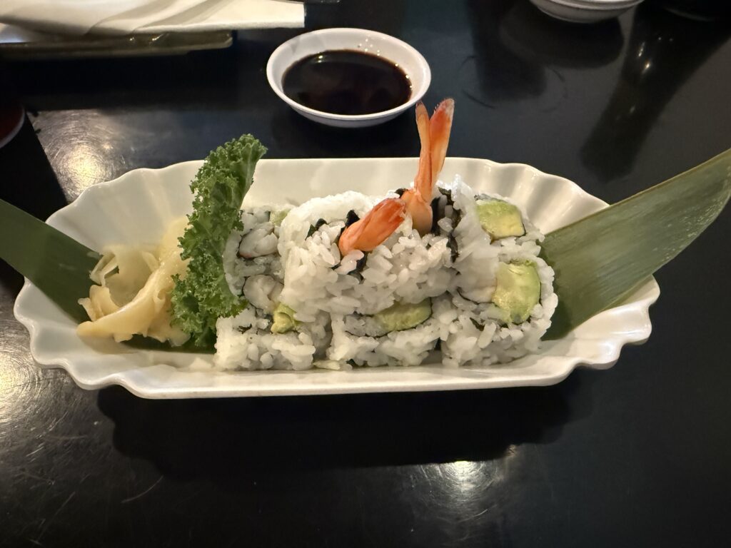 I haven’t had sushi in a long time, so I decided to get a sushi roll. It was normally a shrimp tempura roll, but they subbed grilled shrimp into the roll. They brought a nice bowl of gluten-free soy sauce to use as well!