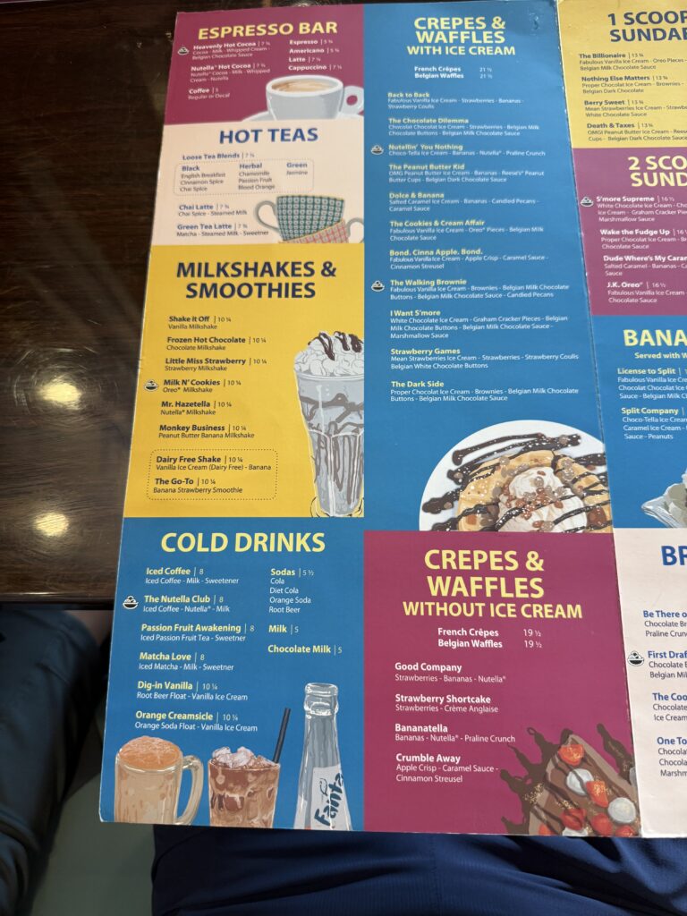 In the gluten-free section, the thought of a waffle combine with one of my favorite things, Nutella, was speaking my language! The server shared that the Code Nutella was very popular, so that’s what I ordered.