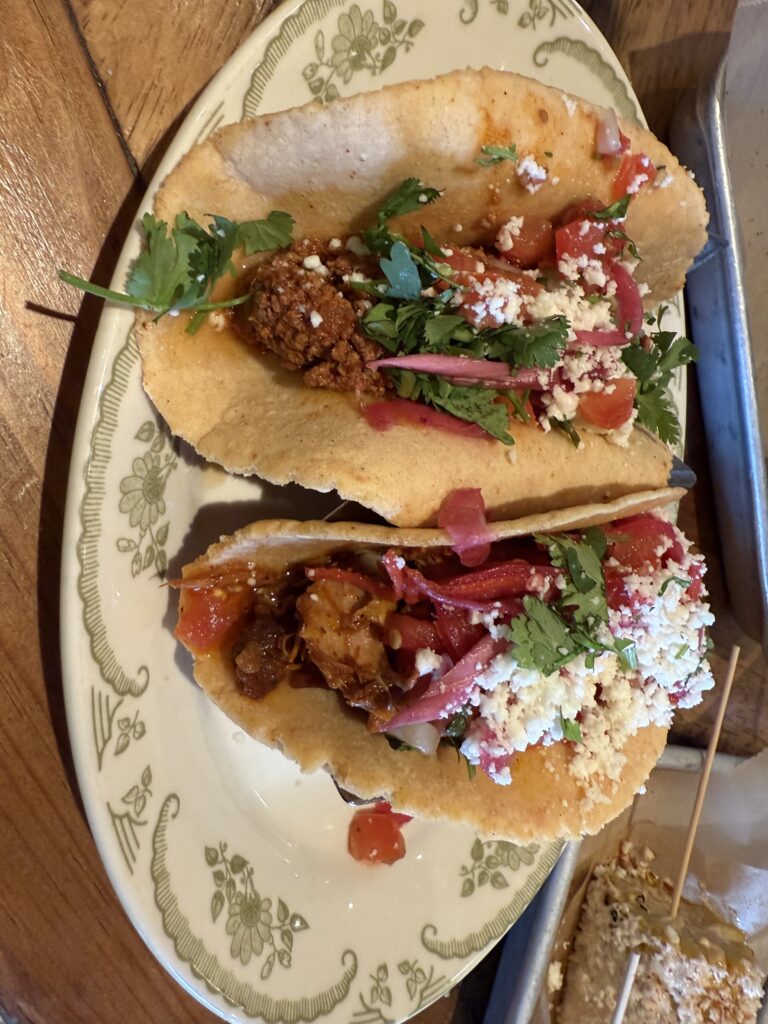 I chose to try the pollo and carne molida tacos. They were on corn tortilla’s and were delicious!