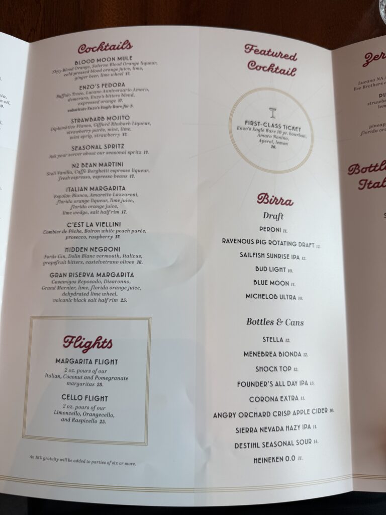 There are so many choices of places to eat at Disney Springs, it takes a while to enjoy them all. Recently, I went over to Maria & Enzo’s for the first time. I wanted to give it a try after enjoying the Enzo’s Hideaway and the server sharing that the dish I had was also served at Maria & Enzo’s, but it’s just a bit different.