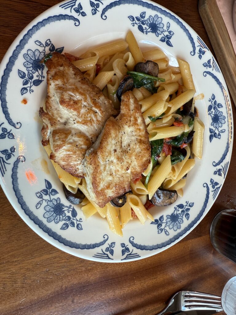 I ordered the Torchio Alle Verdure with grilled chicken added to it. The gluten-free pasta was cooked perfectly and was delicious. The Calabrian chili’s gave a nice spicy kick to the sauce. Obviously, the bread crumbs were removed to remain gluten-free. The chicken was thin chicken slices and grilled perfectly.