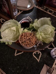 We were ordering the lettuce cups to share at the table, but the server was quick to tell us that there are two different versions and they are not naturally gluten-free. As I looked at the menu, I was a little disappointed. In the past, I had enjoyed the chicken tikka masala as my meal, but it was only on the regular menu with a tofu version on the allergen menu. I was thrilled as the server told me that the chicken version was also gluten-free if the naan was removed. She made the modification and I was able to enjoy a trip down memory lane with such an amazing meal.