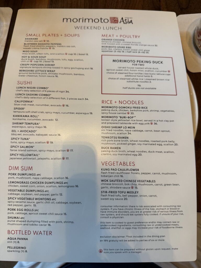 Obviously timing of the day can give different options here, but this is an overview of weekend lunch. It’s worth the visit and everyone in my family loved their meal overall. Enjoy Morimoto Asia and the experience it brings!