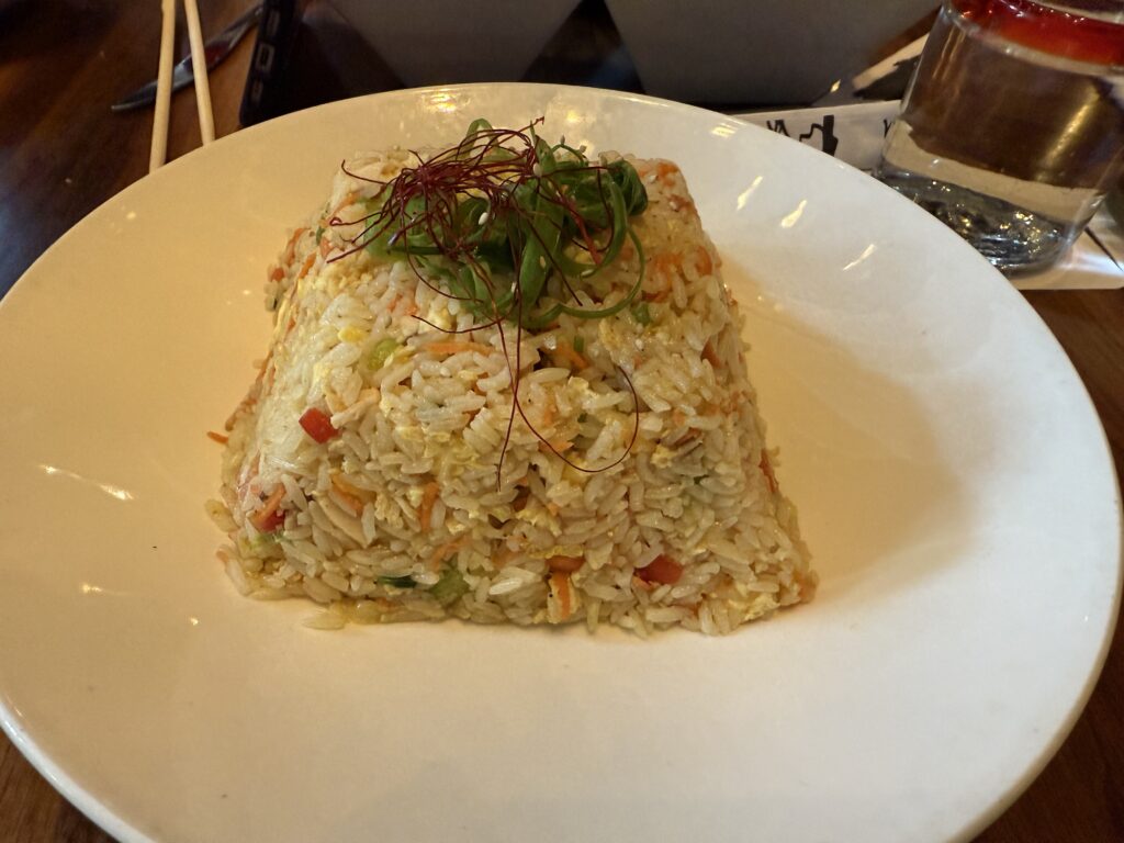 The edamame was excellent. Plenty of salt and they were steamed perfectly. They didn’t last long as we ate them quickly! The fried rice was good also, but to be honest, it was a little bland. Plenty of vegetables and meat mixed throughout, but there just wasn’t a lot of flavor overall.